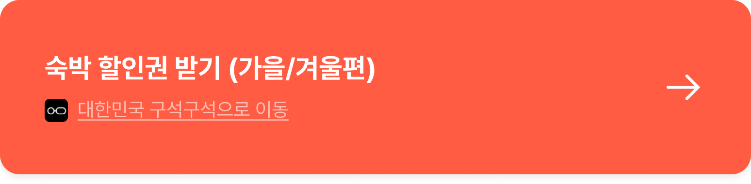 - 주중·비성수기 조합: 비수도권 숙소를 주중 예약 + 가을/겨울 쿠폰으로 결제하면 체감가 크게 하락해요